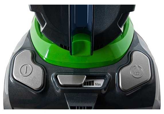 - Регулировка мощности на корпусе позволяет адаптировать под разные поверхности, на максимуме поднимает коврики.