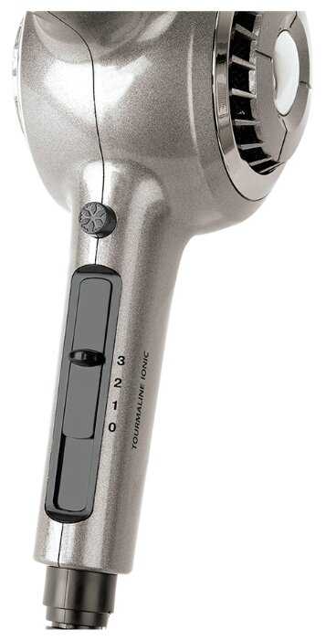 - + Интересный по дизайну и удобный корпус. Хорошо ложится в руку. Длинный шнур позволяет работать им очень свободно. Есть функция холодного обдува, три степени мощности и три градации температуры. Мощный.