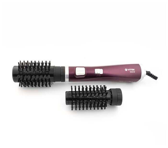 Есть холодный воздух, средняя температура и горячая. На холодном работает достаточно тихо, по мере добавления - громче, приближаясь к небольшому пылесосику) На высокой температуре греется достаточно сильно. Нажатием кнопки щетка крутится в одну или другую сторону.