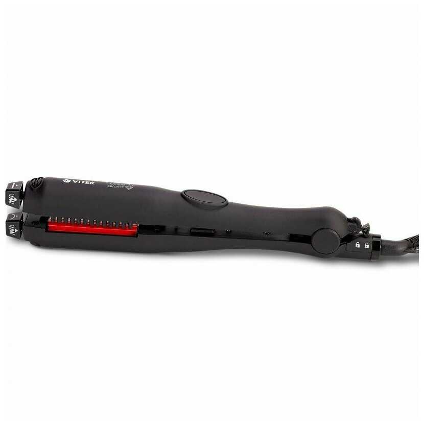 - + Есть блокировка открытия щипцов, в закрытом виде компактнее хранить. На вид хороший стайлер, особенно, учитывая цену.