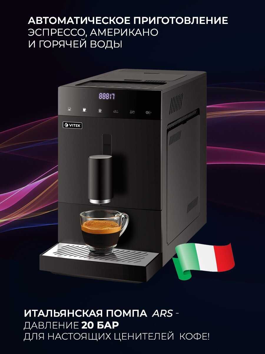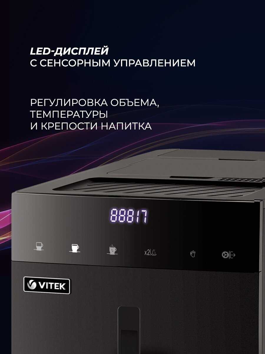 Целевая аудитория и сравнение с конкурентами: Идеальный пользователь и сценарии применения: Данная кофемашина оптимально подходит для домашнего использования одним человеком, парой или небольшой семьей, потребляющей 4-5 чашек кофе в день. Ее также рассматривают как вариант для малого офиса. Это устройство для тех, кто ценит вкусный зерновой кофе, но не нуждается в сложных молочных системах для приготовления капучино или латте. Пользователи, перешедшие на нее с рожковых кофеварок, отмечают значительный рост удобства. Компактность делает ее предпочтительным выбором для владельцев малогабаритных кухонь. Позиционирование на фоне конкурентов: В отзывах проводится прямое сравнение с такими брендами, как Bosch, Saeco, Krups и Thomson. Пользователи отмечают, что при более доступной цене, кофемашина Vitek демонстрирует сопоставимое, а в чем-то и превосходящее качество кофе. В частности, заварочный блок оценивается как более солидный, чем у Thomson. При этом признается, что у некоторых конкурентов могут быть больше резервуары для воды и жмыха, а также использованы более дорогие материалы корпуса. Ключевым преимуществом Vitek называют удачное сочетание цены, компактности, достаточного функционала (регулировка помола, крепости, объема, подогрев чашек) и качества конечного продукта, что делает ее сильным конкурентом в своем сегменте.