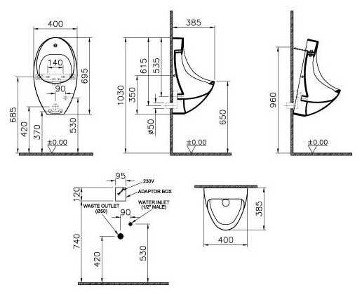 Характеристи VitrA Arkitekt 4106B003-5291 с горизонтальным выпуском
