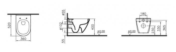 - + удобный унитаз комфортного размера с открытым монтажом