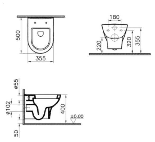| Дополнительная информация : | механизм слива и режим слива определяются системой инсталляции/скрытого бачка. Сиденье с крышкой в комплект не входит. |