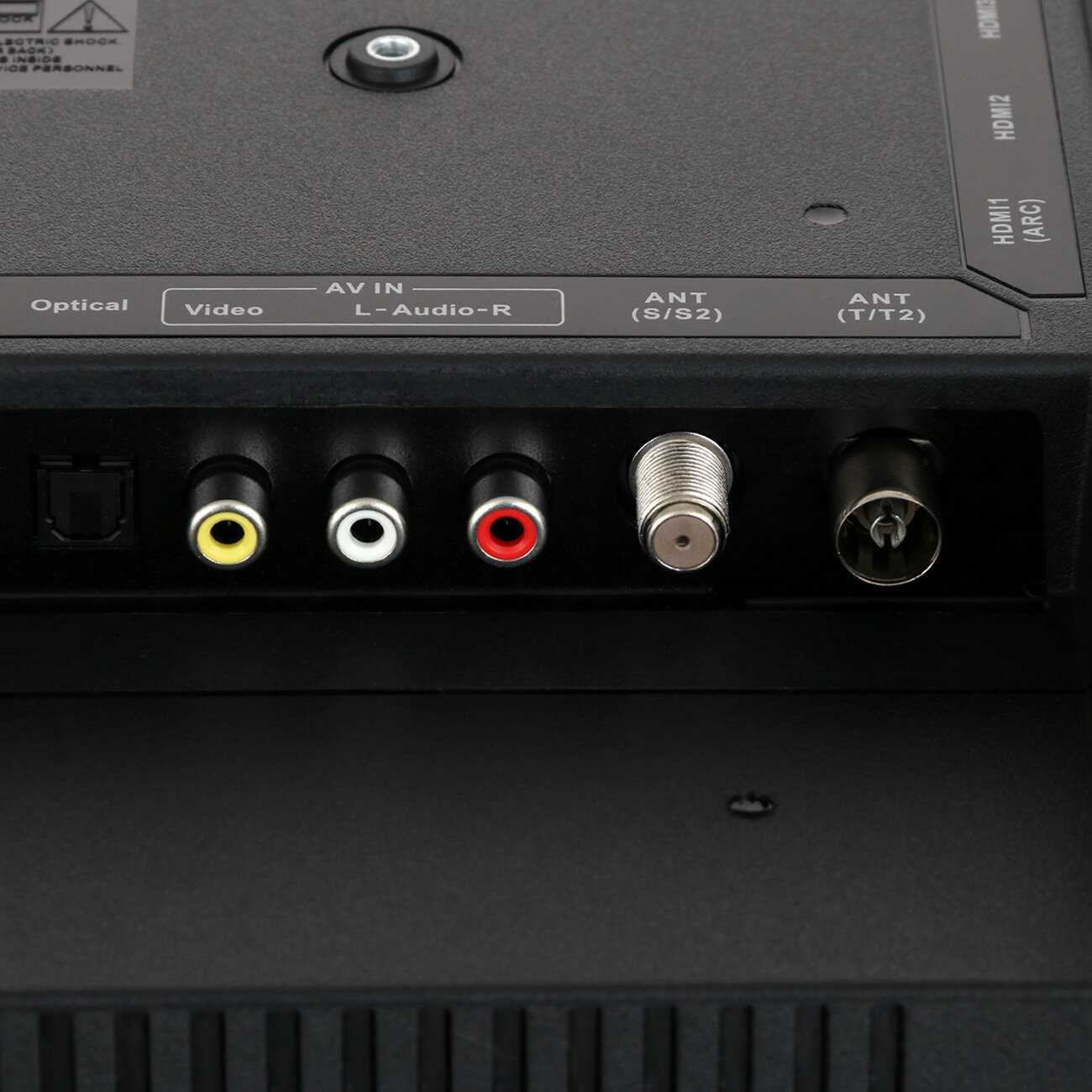 Ключевые отличия — равномерная подсветка без засветов по краям, неожиданно чистый звук без хрипов на высокой громкости и наличие трёх HDMI-портов. Дополнительный плюс — тонкая рамка экрана, визуально увеличивающая область просмотра.