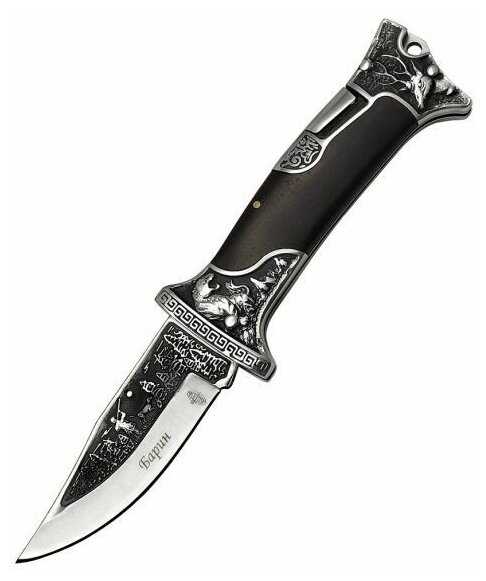- + Качественный,заточку держит, смотрится очень даже неплохо.Если надо то на поясе держится отлично.
