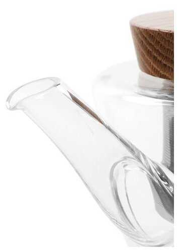 - + Красивый миниатюрный чайник на одну большую кружку. Удобное мелкое ситечко, не пропускает чаинки, стекло хорошего качества, всему тонкое, не мутное.