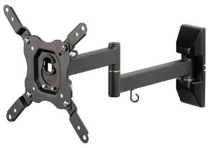 - Механизм позволяет поворачивать телевизор на 90°, наклонять по вертикали и горизонтали, а также регулировать вылет от стены (до 40 см), что адаптирует его для помещений с нестандартной планировкой.
