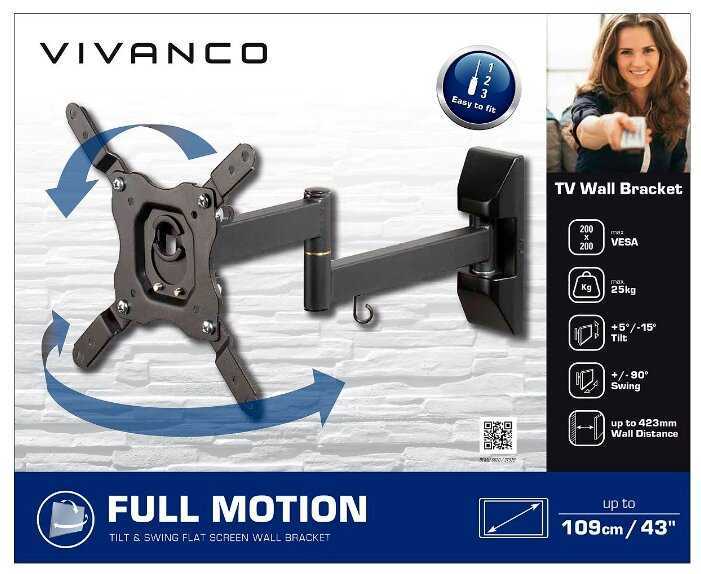 - При повороте телевизора на 90° длина кронштейна может оказаться недостаточной для моделей шире 55 см, что приводит к неравномерному распределению нагрузки.