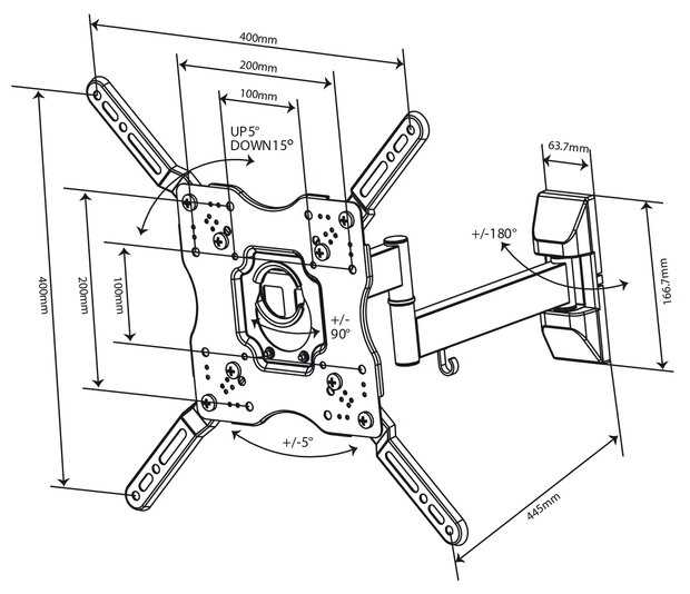 1.Угол поворота штанги кронштейна позволяет охватить необходимую поверхность обзора.