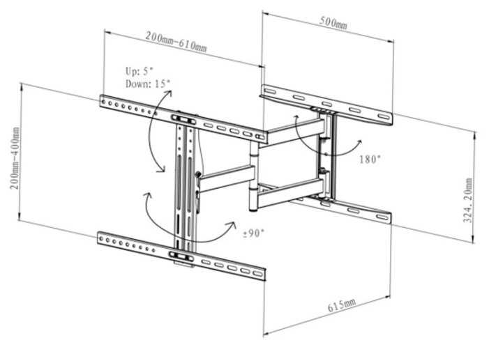Стандарт Vesa : | 200x200 мм, 300x300 мм, 400x400 мм, 600x400 мм |
