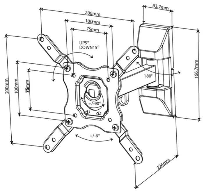 Стандарт Vesa : | 100x100 мм, 200x100 мм, 200x200 мм, 100x200 мм, 75x75 мм, 50x50 мм |