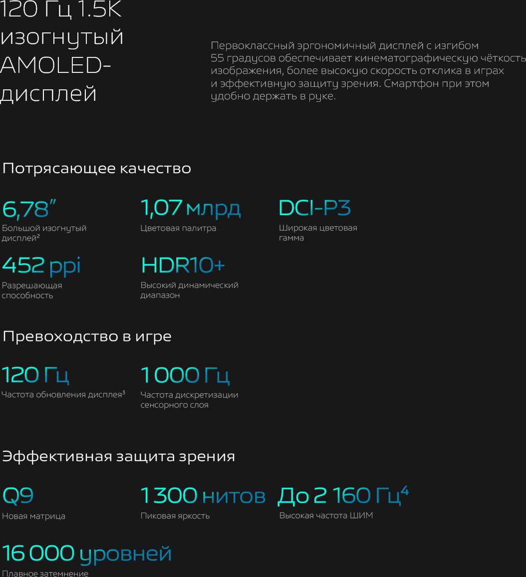 - Яркий AMOLED-экран с частотой 120 Гц: