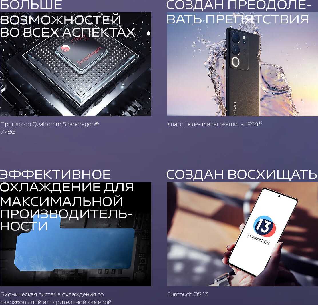 Сердце устройства — процессор Snapdragon 778G в паре с 12 ГБ оперативной памяти — обеспечивает «летающую» работу интерфейса Funtouch OS на базе Android 14. Пользователи подчёркивают отсутствие лагов даже при одновременной работе с тяжёлыми приложениями: например, стриминг в Twitch на фоне активного чата в Telegram не вызывает перегрева. Геймеры хвалят «игровой режим», который распределяет ресурсы для плавного FPS в Genshin Impact или PUBG Mobile. Отдельно отмечается стабильность связи: VoLTE и VoWiFi корректно работают с оператором «Мегафон», чего не наблюдалось на предыдущих устройствах авторов отзывов. Минус — отсутствие оптимизации для некоторых приложений-компаньонов (например, Galaxy Wearable для часов Samsung), что ограничивает их функционал.