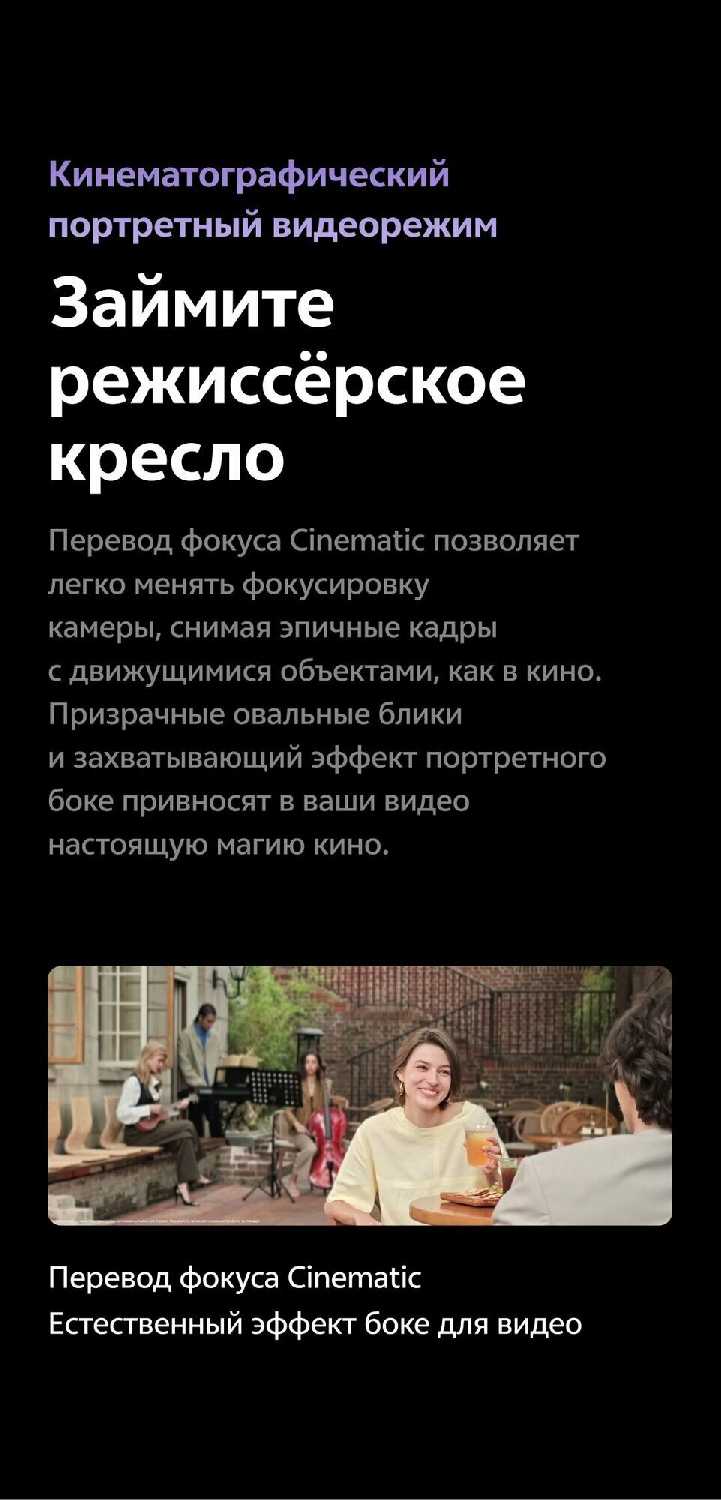 - Режим интеллектуальной Aura-подсветки улучшает качество портретных фотографий, корректно отделяя объект от фона.