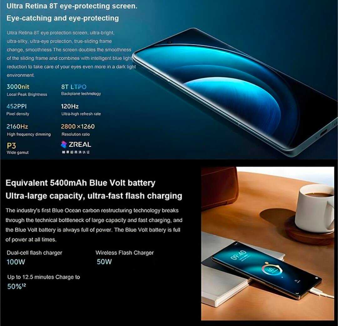 Смартфон оснащён топовым процессором MediaTek Dimensity 9300, который по тестам опережает Snapdragon 8 Gen 3. Владельцы фиксируют стабильную работу в ресурсоёмких задачах: 4-часовые игровые сессии в Genshin Impact на ультра-настройках не вызывают просадок FPS, а температура не превышает 39°C. Объём оперативной памяти (до 16 ГБ) и хранилища (до 1 ТБ) исключают необходимость постоянной очистки кэша. Аккумулятор на 5400 мАч обеспечивает 15-20 часов активного использования (соцсети, съёмка, навигация) или 1.5-2 дня в умеренном режиме. Важнейшая особенность — 100-ваттная зарядка, восполняющая ёмкость с 20% до 100% за 20 минут, что пользователи называют "революционным удобством". Отмечается, что включение адаптивной частоты обновления 120 Гц (вместо фиксированной) снижает автономность на 15-20%.
