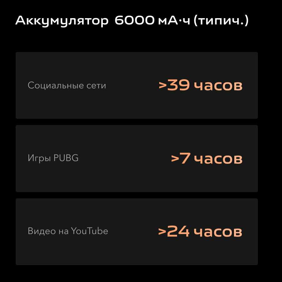 - Аккумулятор 5000 мАч обеспечивает 2-3 дня работы при умеренном использовании (мессенджеры, соцсети).