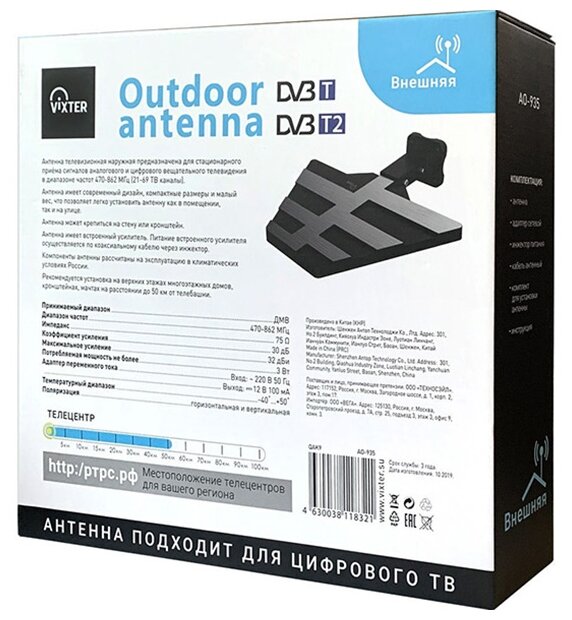 | Дополнительная информация : | Антенна телевизионная наружная Vixter AO 935 компактная |