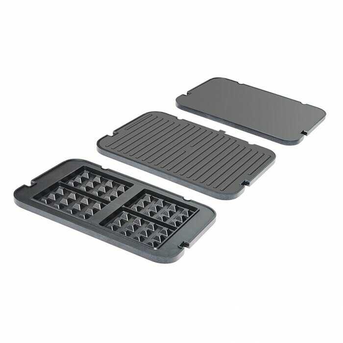 - + быстро нагревается, сменные панели для вафель, двойная коробка