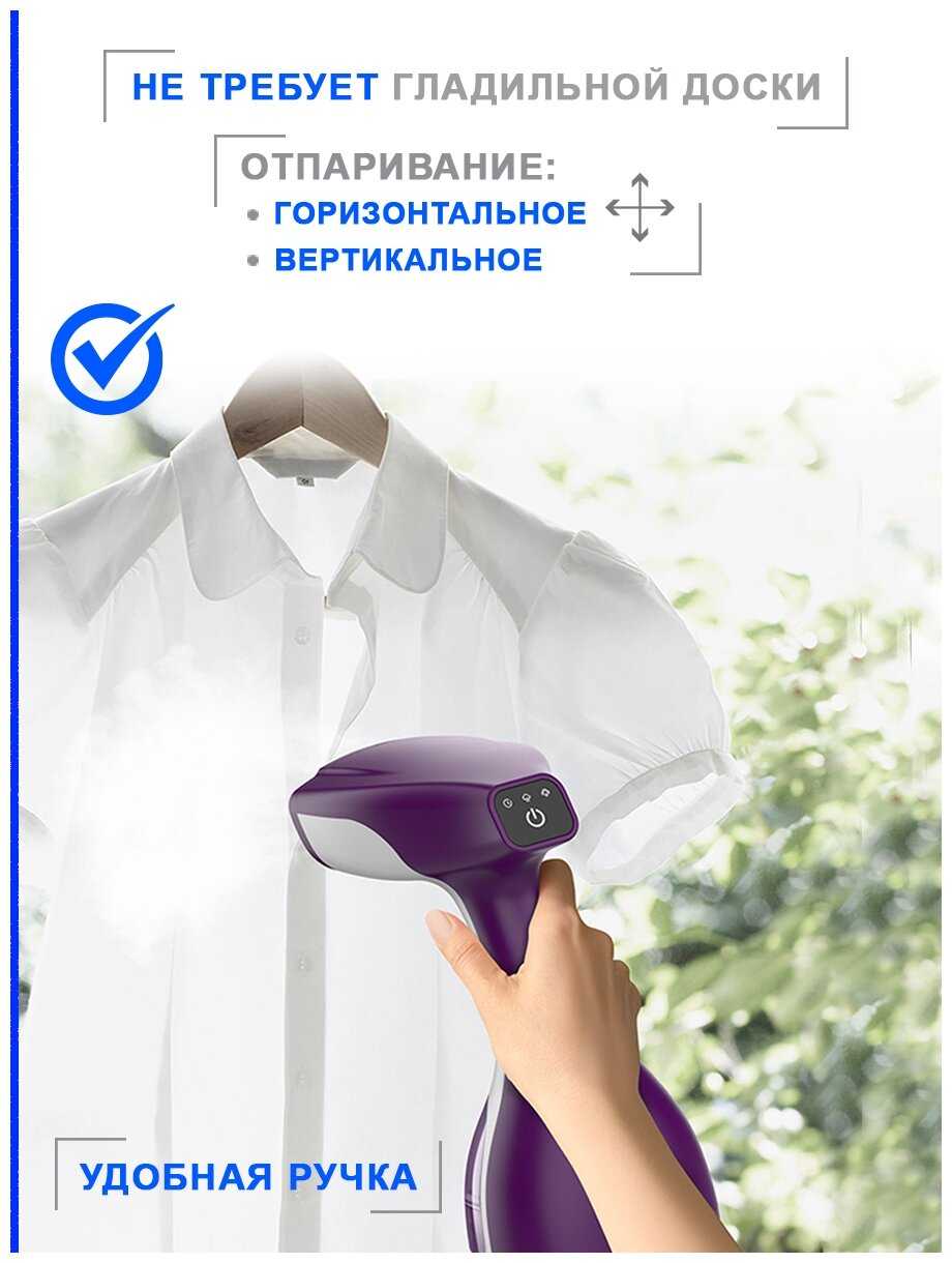 - Не требует гладильной доски — вещи обрабатываются на весу или на любой горизонтальной поверхности.