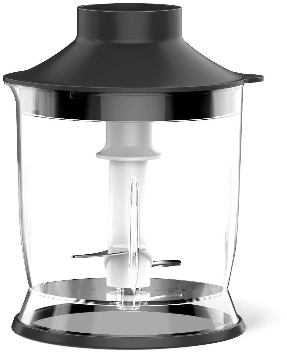Есть допы в виде: крышки на мерный стакан, можно приготовить, накрыть и поставить в холодильник. Прорезиненный низ у измельчителя, не скользит по столу.
