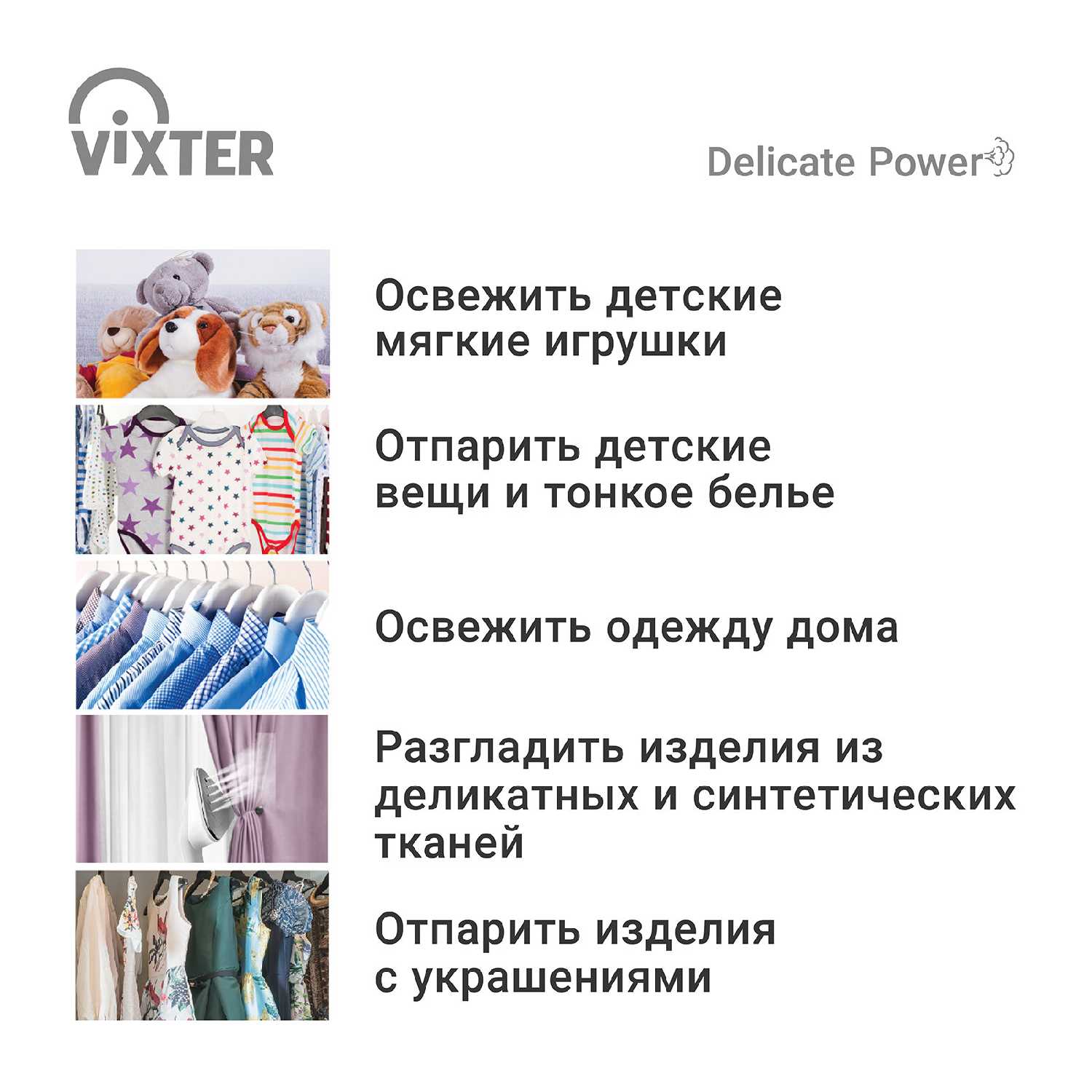 - + Замечательный и простой в использовании ручной отпариватель для одежды VIXTER. Этот бытовой прибор можно применять в любое время, в любом месте благодаря легкой, компактной конструкции.
