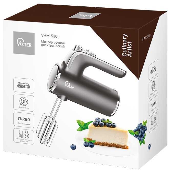 - Мощный двигатель с турборежимом (400 Вт, до 700 Вт в турбо) для эффективного взбивания: