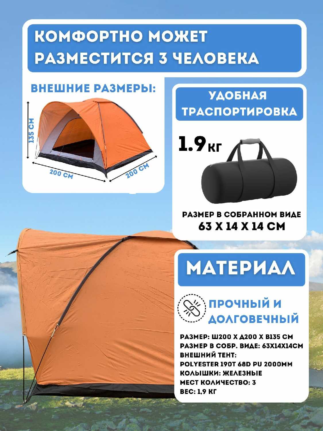 - Достаточная вместительность для комфортного размещения 2-3 человек: