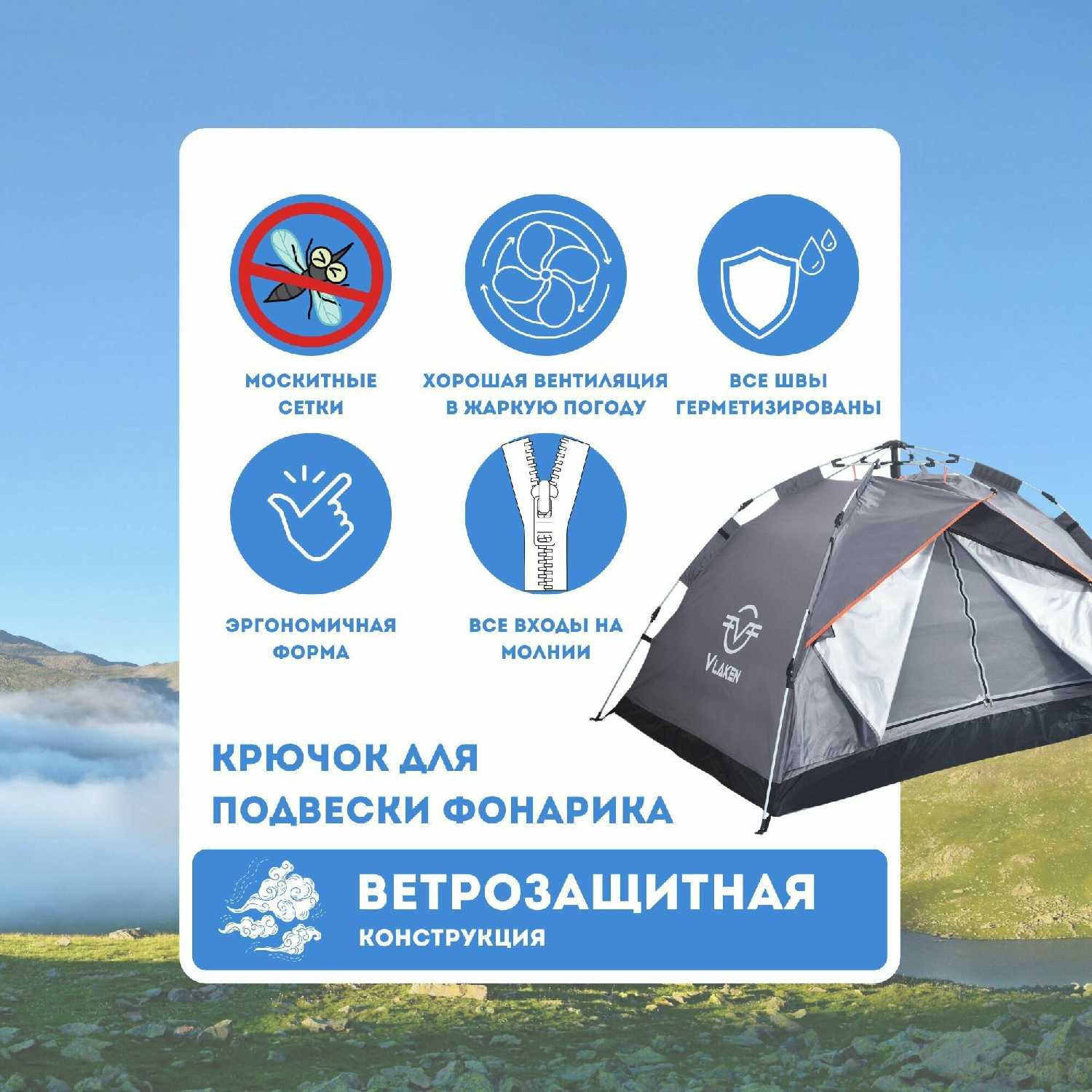 - Модель предлагает ключевые функции автоматической палатки (быстрое развертывание, вентиляция, защита от насекомых) по доступной цене, делая ее привлекательной для покупателей с ограниченным бюджетом.