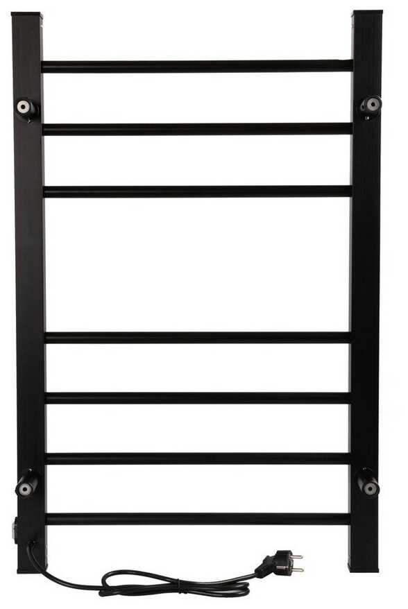 Симпатичный сушитель, намного лучше водяных сушителей. Правда подключение наружное и только с правой стороны, хотя шнур длинный, поэтому если розетка слева, то шнур за сушителем можно легко протянуть влево и спокойно подключить, длина шнура почти полуметровая (1,4 м). Крепежи для установки в комплекте. Монтаж простой. Конструкция не тяжёлая. Включение нагрева происходит переключателем справа, там же, откуда и шнур растёт. Поэтому сушилка, в принципе, всегда может быть подключена к розетке, а нагрев можно переключателем когда надо включать и выключать, никаких проблем. Максимальная температура нагрева, если верить характеристикам, 55 градусов. Проверить нечем, но по ощущениям скорее всего так и есть, верю на слово.