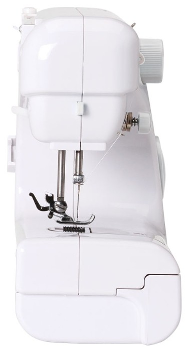 Какими-то большими талантами в швейном деле не обладаю, поэтому машинку выбирала попроще, чтобы было легче её понять, быстрее привыкнуть и освоить. Товар при получении осмотрела, повреждений не увидела, на работоспособность проверила уже дома, исправно работает, и оказалась много тише, чем я думала. Внешний вид в плане дизайна так себе, похвастаться тут нечем, зато компактностью очень понравилась, узенькая, в меру тяжёлая, с обратной стороны корпуса предусмотрена ручка, под корпусом мягкие ножки, в процессе использования по столу не скользит и не дребезжит. Под линейкой находится отсек для хранения всякой мелочевки, удобный и вместительный. Шьёт хорошо, мне как новичку работать с ней комфортно.
