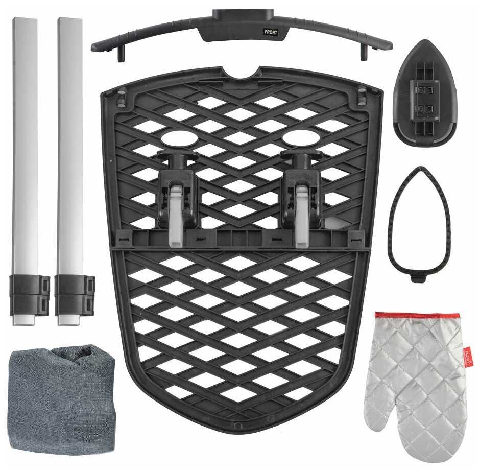 - Пластиковые крепления ножек и держателя доски имеют люфт 3–5 мм, что вызывает неустойчивость при нажатии на утюжок.