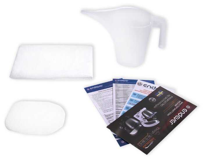 - Мерный стакан с узким носиком облегчает заливку воды.