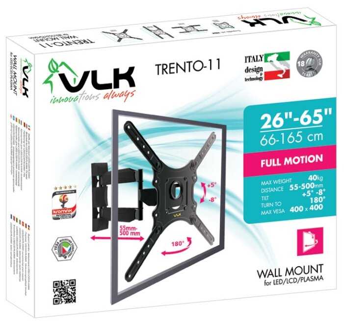 Неплохая штука, всё ок. А вообще, если углубляться в подробности, это итальянский бренд, известный мне по швейным машинкам, покупали жене в прошлом году, но он промышляет ещё и такими вот кронштейнами. И кронштейн я покупал в первый раз, посмотрим как он поведёт себя в будущем, т.к висит пока всего лишь неделю. По характеристикам, предполагаю, что проблем с ним быть не должно, да и по металлу тоже можно понять, что крепкий. 40ка килограммовой нагрузкой, которая является его максимальной, я его всё равно нагружать не собираюсь, а телевизор, который на нём устроился, вЕсит всего каких-то 15 килограмм, думаю для кронштейна этот вес держать - раз плюнуть. Поэтому проблем от него не ожидаю.