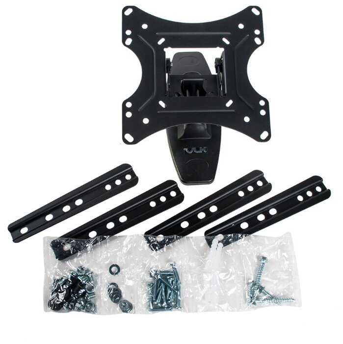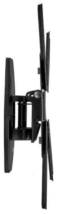Нормальный кронштейн, брали сразу вместе с телевизором, что бы потом не заморачиваться с поиском подходящего. Кронштейн настенный, конструкция подвижная, наклонно поворотная. Телевизор на кронштейне можно поворачивать в лево право и наклонять, расстояние от стены тоже корректируется в диапазоне от 6 до 40 сантиметров. Запас прочности у кронштейна приличный, его можно использовать для монтажа телевизоров с максимальной диагональю в 55 дюймов, минимальный размер диагонали 26. Для размещения нашего 42 х дюймового телевизора он отлично подошёл.