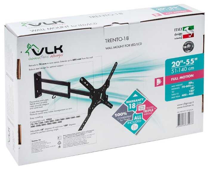 Кронштейн хороший, оправдывает ожидания и даже более того: внешний вид внушает доверие, упаковка небольшая, собственно, как и сам кронштейн в сложенном состоянии. Способен удерживать крупные телевизоры на выносе в 605 мм от стены - на максимально развёрнутом держателе. Совершенно любое положение, кроме 8 градусов вверх и вниз, но этого предостаточно. Максимальная подвижность телекронштейна. Для крепления к стене необходимо купить новые шурупы под ключ (отвёртка бесполезна) 60х6 и ввернуть их в дюбели из комплекта, т.к. комплектные ввернуть в стену практически невозможно, более того, на них нет ключей - они не стандартных размеров. Возможны проблемы с креплением к телевизору: винты в комплекте могут оказаться слишком длинными - для Sumsung 55' Crystal UHD пришлось добавить пластиковые проставки - по 3 шт., недостаток которых исправлен за счёт второго комплекта второго кронштейна. Для Philips 5-й серии 43" потребовалось по одной проставке на винт (меньшего диаметра) и: важно заранее вставить сетевой шнур, иначе потом придётся раскручивать снова, чтобы его воткнуть в гнездо поскольку оно окажется под накладкой и лучше заменить прямой штекер на боковой. Таким образом, прежде чем собирать конструкцию, убедитесь в наличие нужных крепёжных элементов и обратите внимание на расположение гнезда для сетевого шнура. В остальном - всё хорошо.
