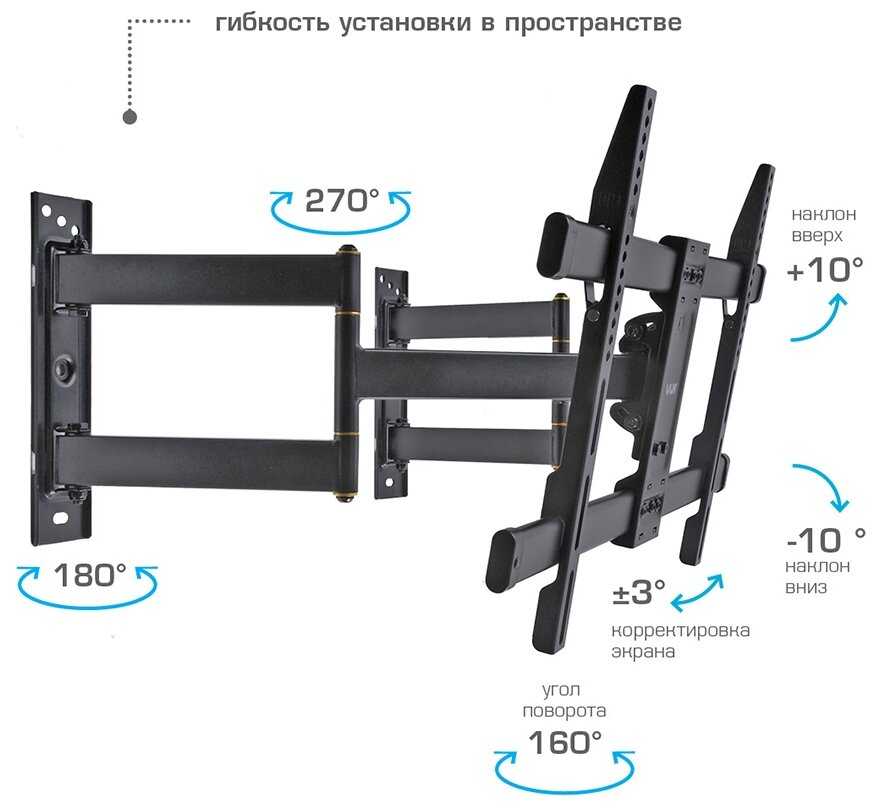 | Способ регулировки : | наклон, наклон и поворот, поворот |