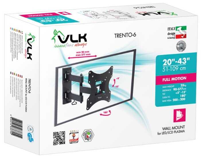 Конструкция обеспечивает 5 степеней свободы, что очень востребовано. Широкий диапазон диагоналей от 20" до 43". Универсальный черный цвет. Можно вращать на 360 градусов. Конструкция кронштейна позволяет спрятать в него кабель. Достаточно развитая система крепления - 3 наиболее популярных по стандарту VESA,