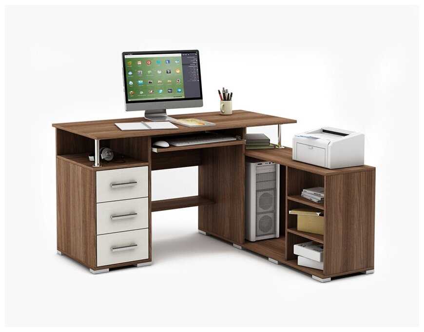 | Особенности : | отделение для системного блока, полка для принтера, с ящиком для хранения, угловой |