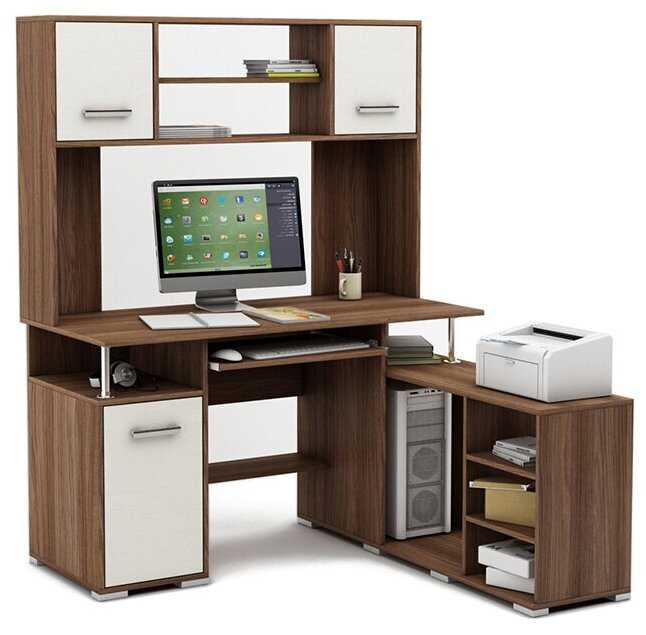 | Особенности : | надстройка, отделение для системного блока, полка для клавиатуры, полка для принтера, с ящиком для хранения, угловой |