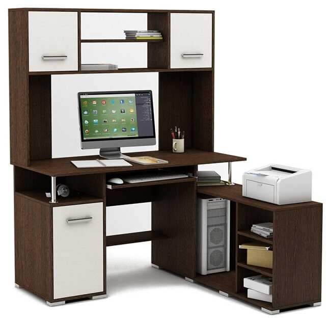 | Особенности : | надстройка, отделение для системного блока, полка для клавиатуры, полка для принтера, с ящиком для хранения, угловой |