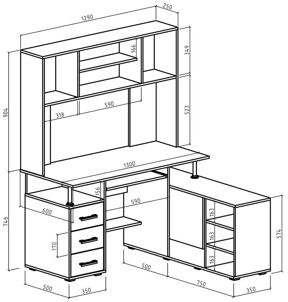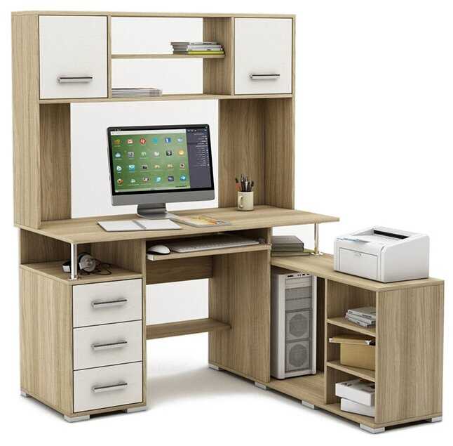 | Особенности : | надстройка, отделение для системного блока, полка для клавиатуры, полка для принтера, с ящиком для хранения, угловой |