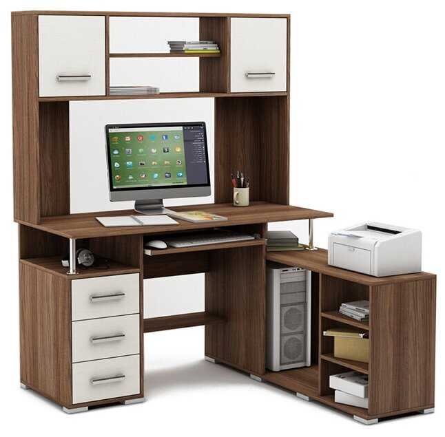 Особенности : | надстройка, отделение для системного блока, полка для клавиатуры, полка для принтера, с ящиком для хранения, угловой |