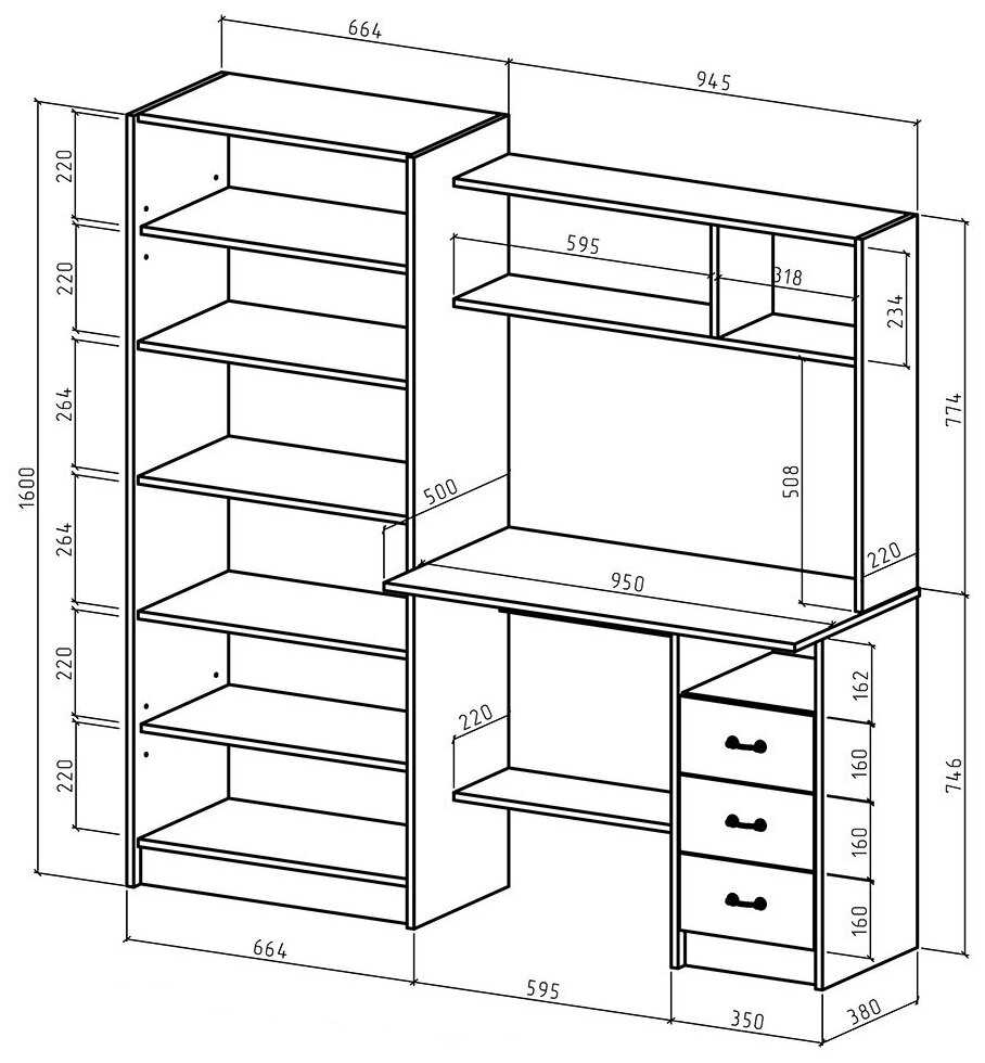 | Особенности : | надстройка, полка для принтера, с ящиком для хранения |