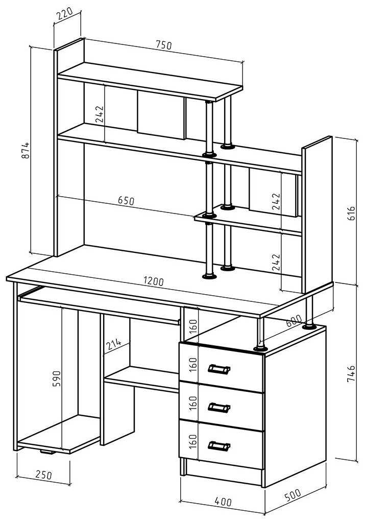 | Особенности : | надстройка, отделение для системного блока, полка для клавиатуры, полка для принтера, с ящиком для хранения |
