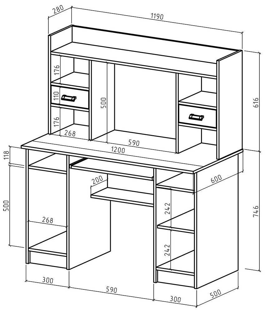 | Особенности : | надстройка, отделение для системного блока, полка для клавиатуры, полка для принтера, с ящиком для хранения |