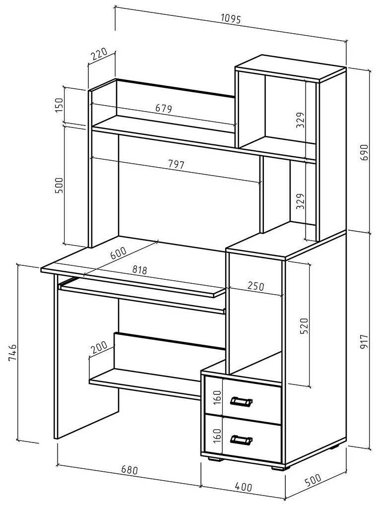 | Особенности : | надстройка, отделение для системного блока, полка для клавиатуры, полка для принтера, с ящиком для хранения |