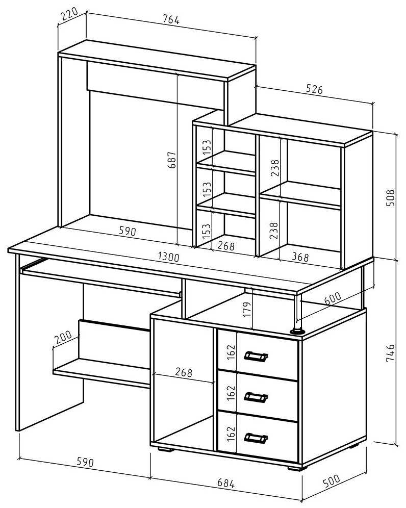 | Особенности : | надстройка, отделение для системного блока, полка для клавиатуры, полка для принтера, с ящиком для хранения |