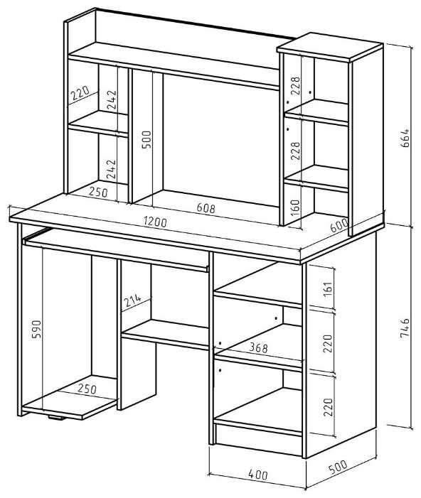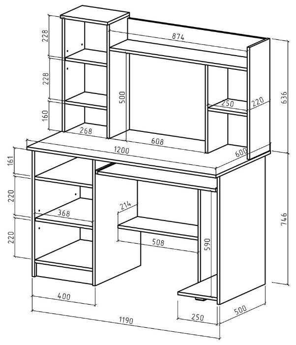 | Особенности : | надстройка, отделение для системного блока, полка для клавиатуры, полка для принтера, с тумбой, с ящиком для хранения |