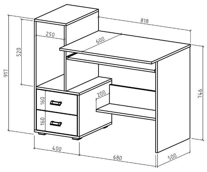 | Особенности : | отделение для системного блока, полка для клавиатуры, полка для принтера, с ящиком для хранения |
